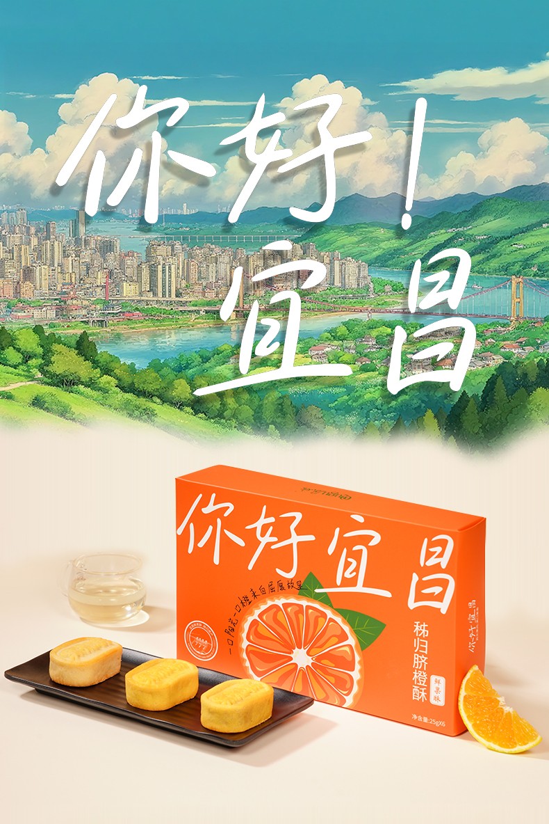 (中科惠橙)屈姑你好宜昌秭归脐橙酥150g 点心糕点