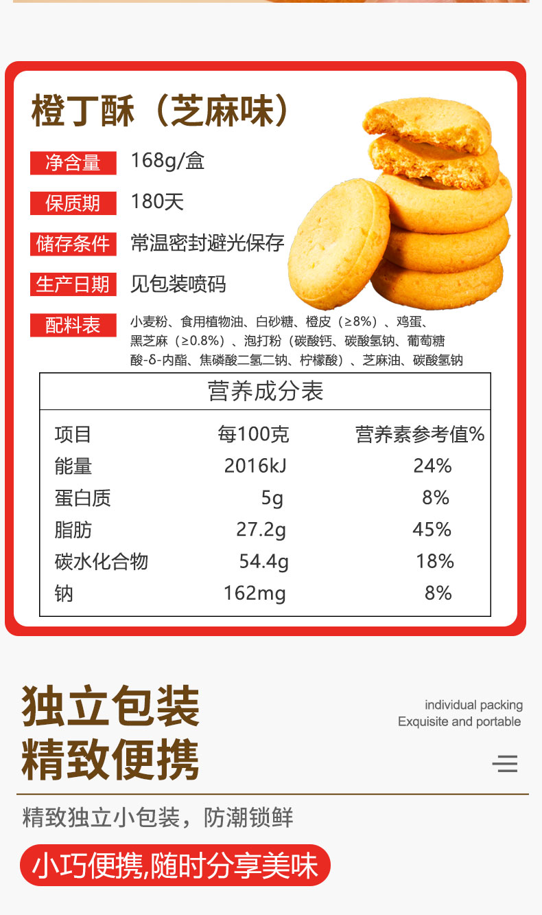 商品名称:(中科惠橙)屈姑橙丁酥芝麻味168g 糕点点心下午茶