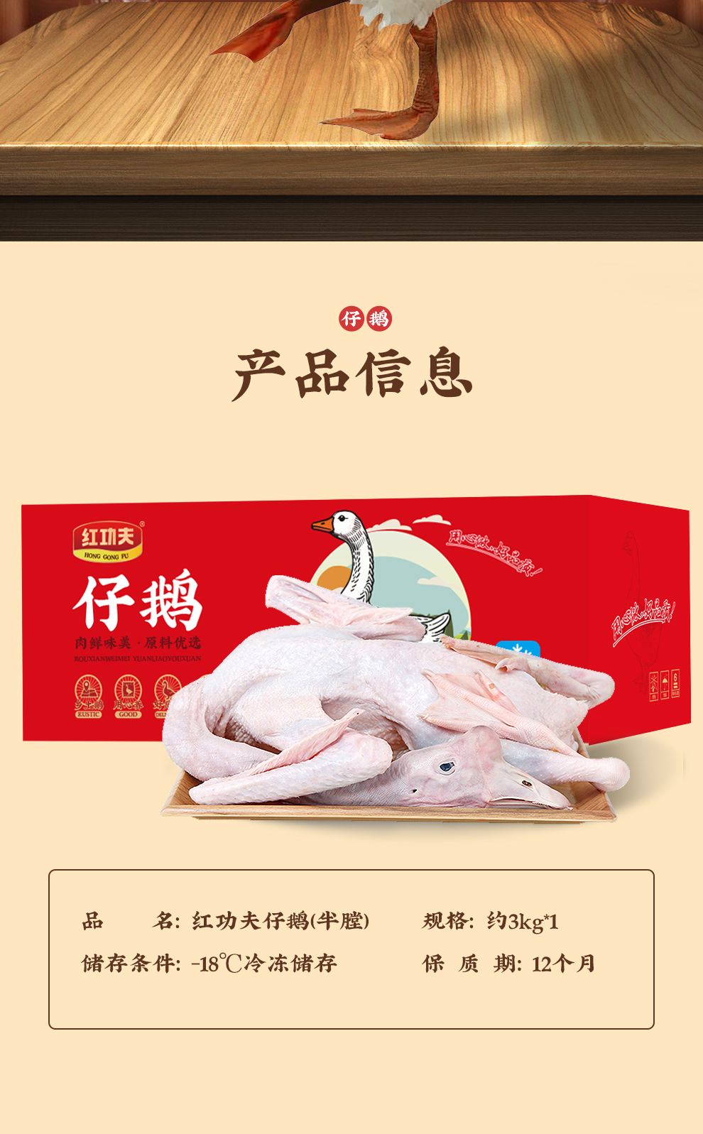 商品名称:(中合誉品)红功夫肉鹅(半膛)3kg 肉鲜味美 原料优选