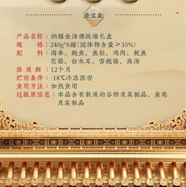 商品名称:(中合誉品)纳福佛跳墙礼盒1440g 240gx6罐 在家吃的山海宴