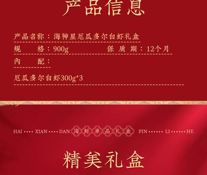 商品名称:(中合誉品)海神星厄瓜多尔白虾礼盒 肉质紧实Q弹嚼劲