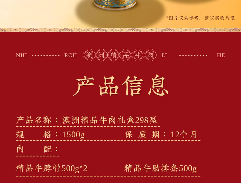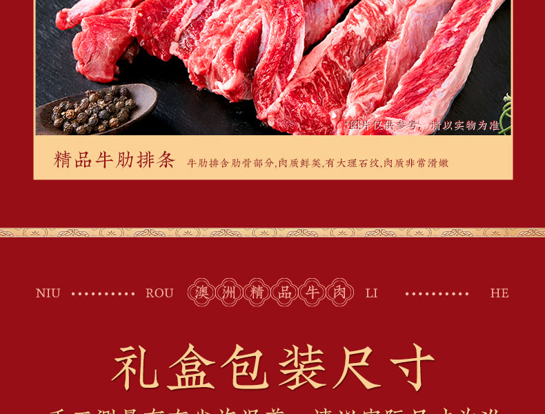 商品名称:(中合誉品)澳洲精品牛肉礼盒298型 1500g 精品羊蝎子500g+精品羊排500g+精品羊小腿500g 高端礼盒甄选牛肉盛宴