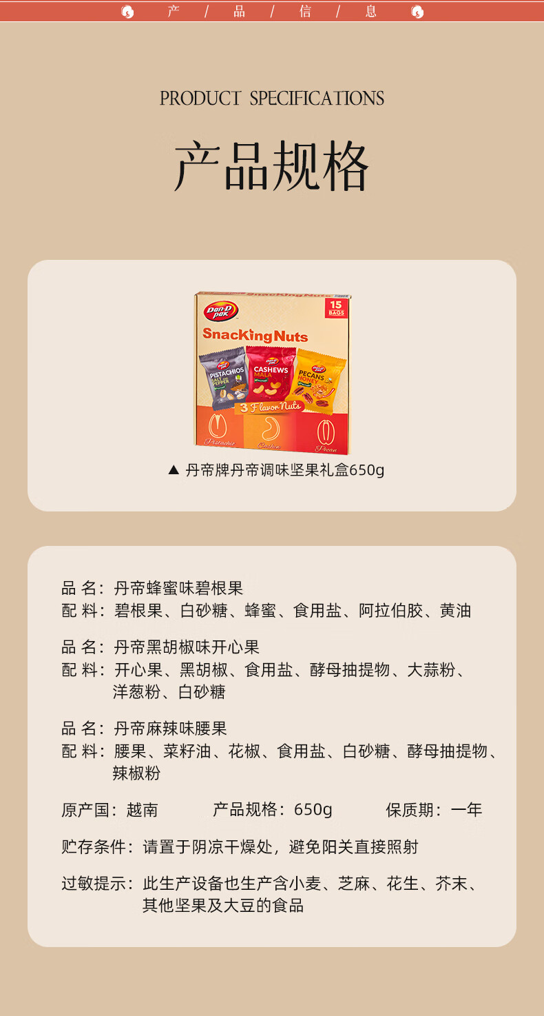 商品名称:(巨邦佑)BJ+丹帝综合坚果礼盒 650g 黑胡椒开心果麻辣腰果蜂蜜碧根果干果送礼