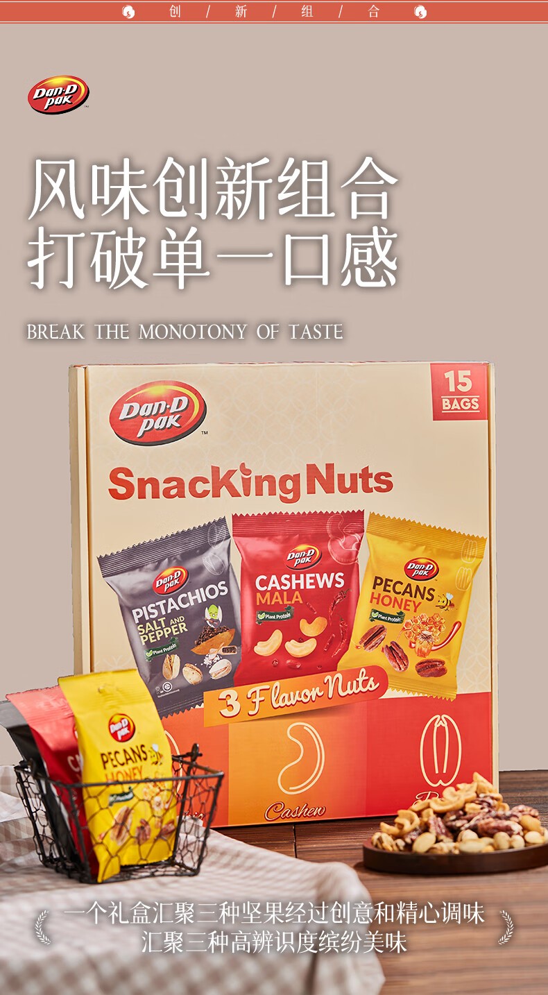 (巨邦佑)BJ+丹帝综合坚果礼盒 650g 黑胡椒开心果麻辣腰果蜂蜜碧根果干果送礼