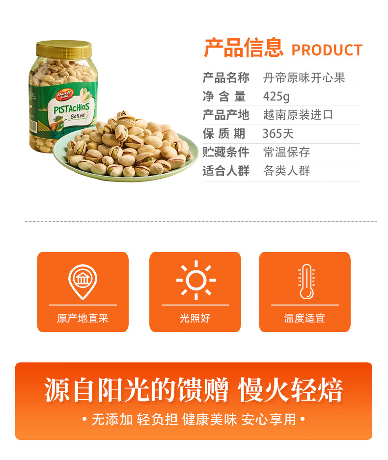 商品名称:(巨邦佑)BJ+丹帝开心果 425g 袋装进口盐焗大颗粒0添加原色无漂白批发烘焙干果零食