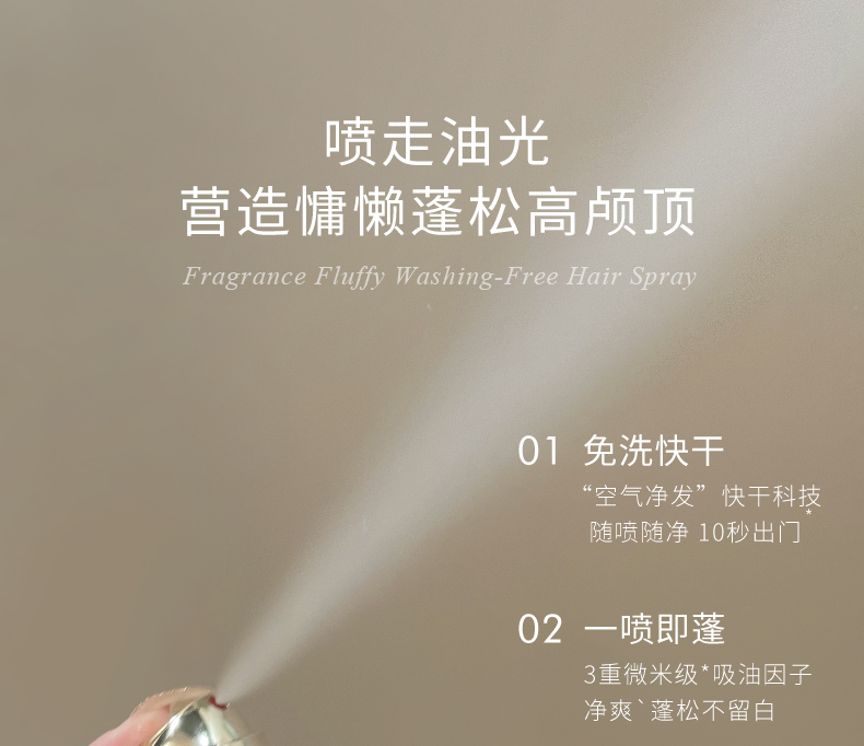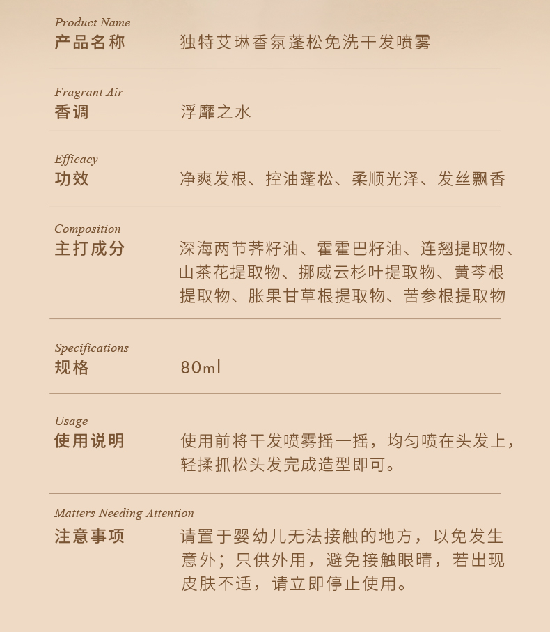 商品名称:(巨邦佑)R+独特艾琳干发喷雾80ml 蓬松控油免洗干发护发 清洁高定香氛控油蓬松 浮靡之水 控油