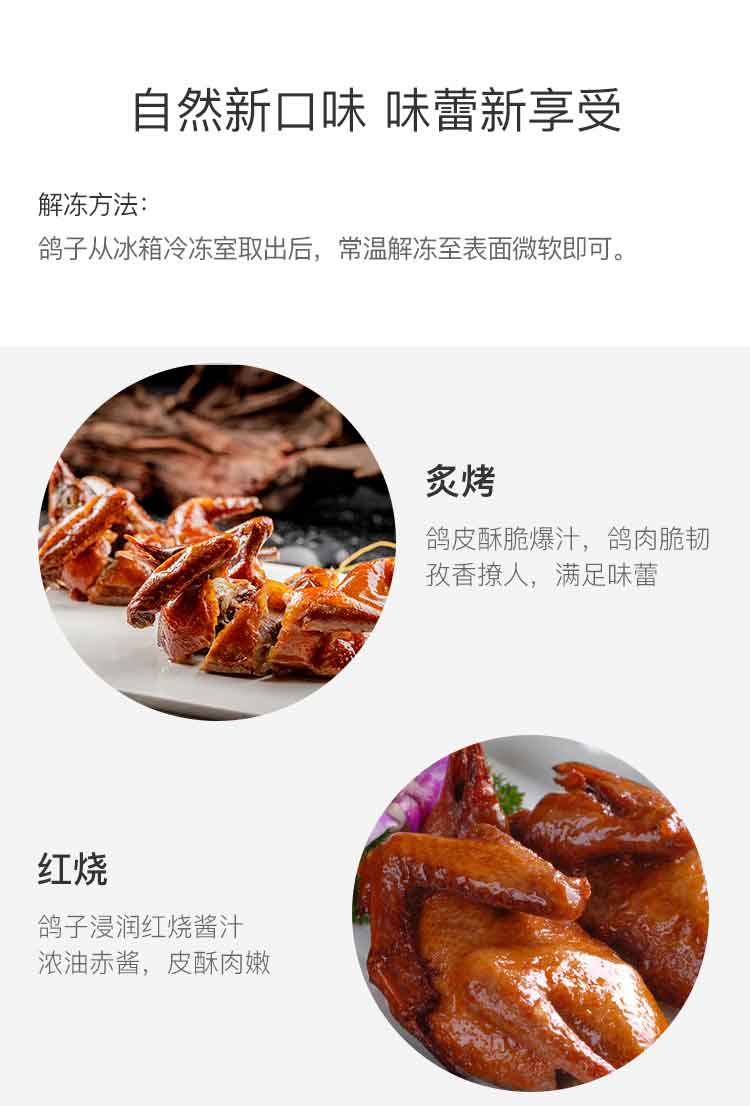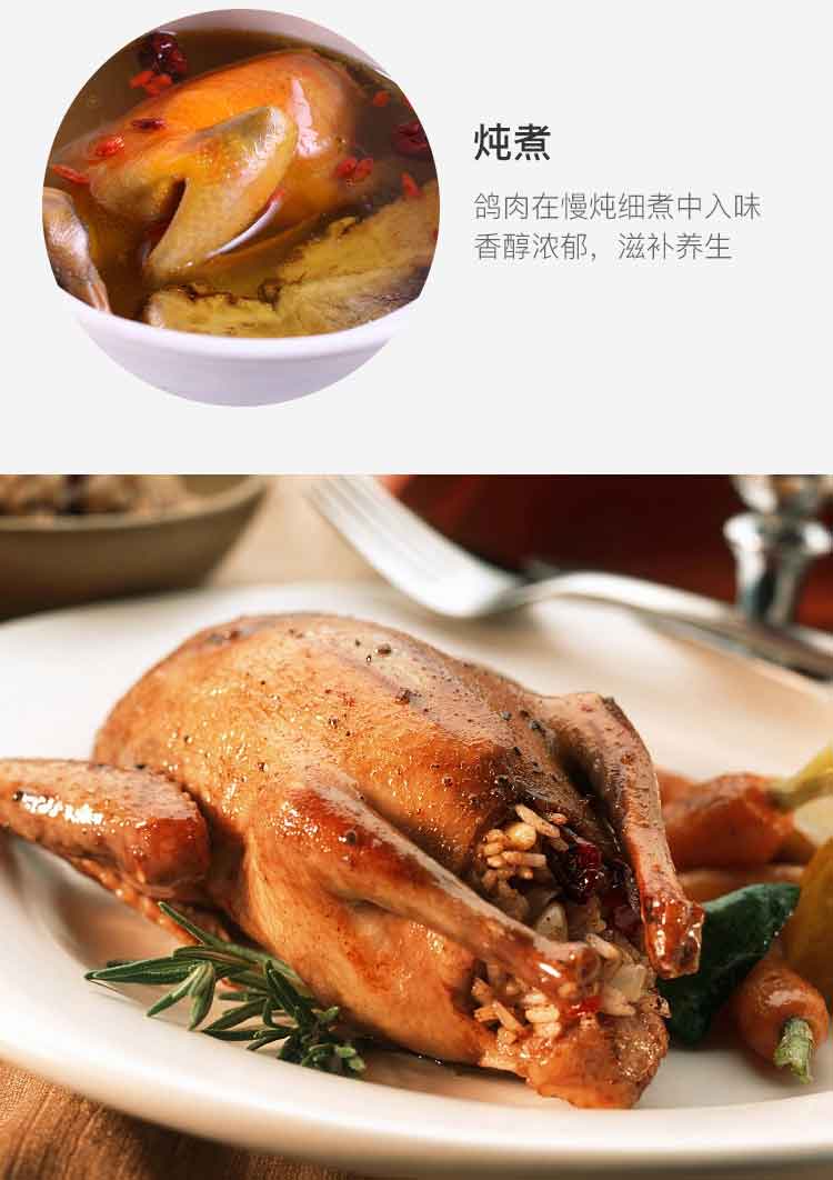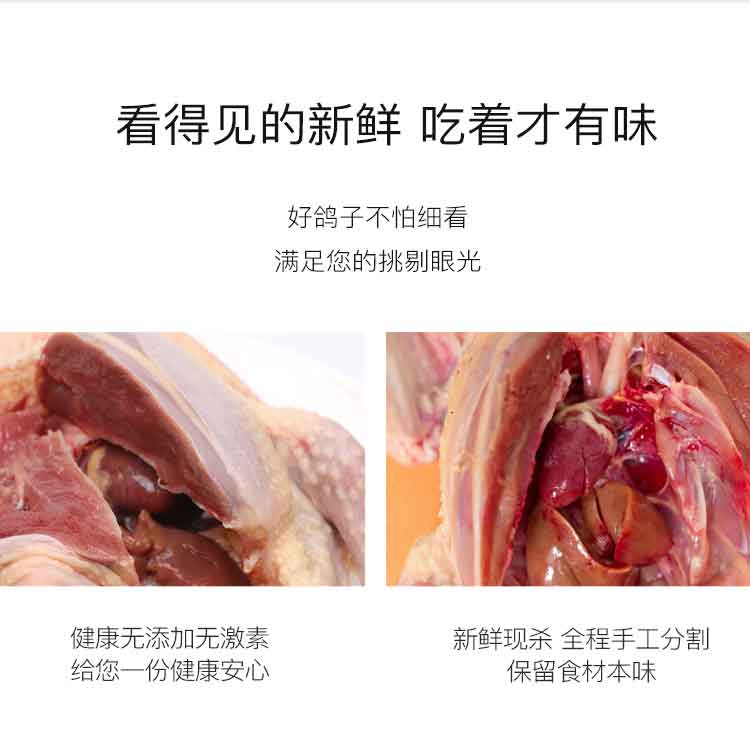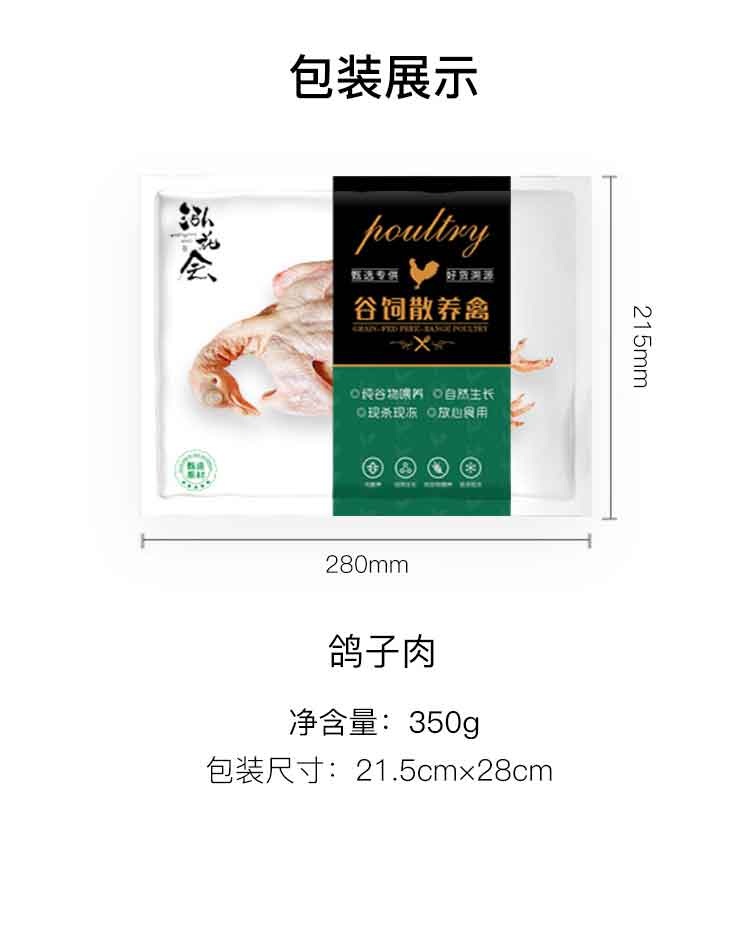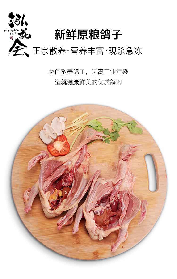 商品名称:(世星阳光)+泓花会 生鲜谷物散养新鲜鸽子 350克*2只 送2只参+2包料 农家散养鸽子肉 谷饲散养 零激零抗
