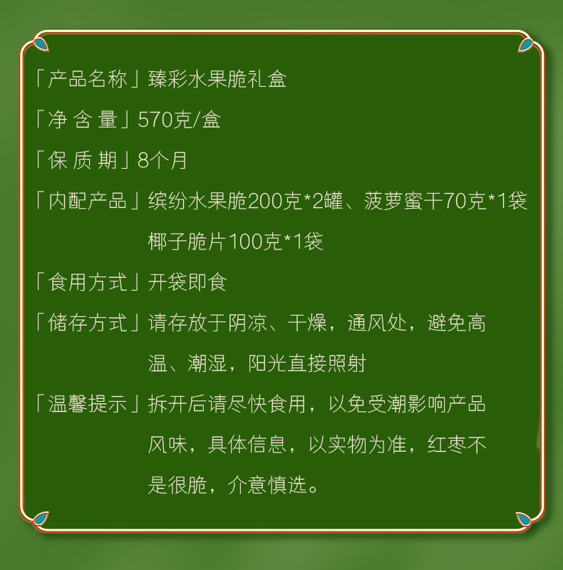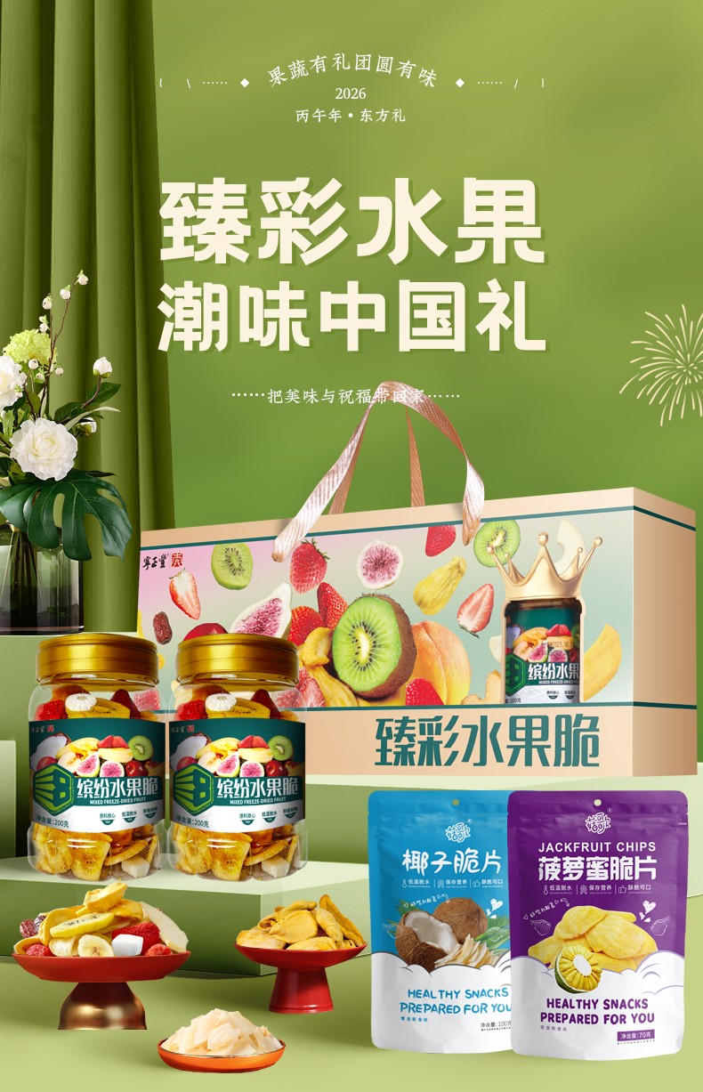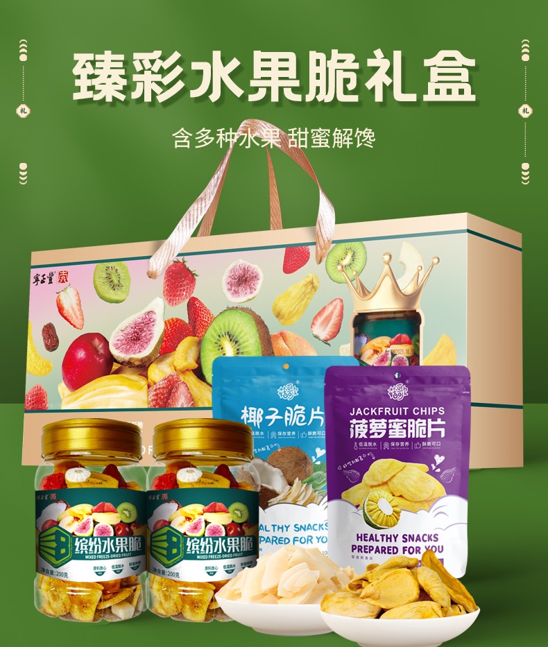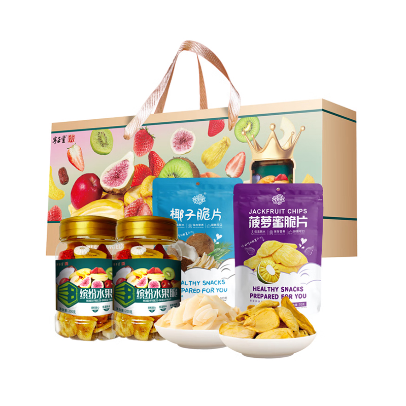 商品名称:(巨邦佑)T+ (yp)宁正丰臻彩水果脆礼盒混合果蔬香菇椰子菠萝蜜黄桃综合水果礼包570g盒