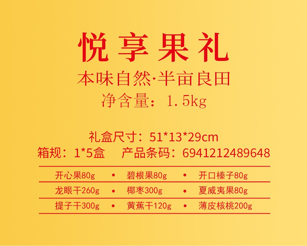 商品名称:(巨邦佑)R+半亩川悦享果礼1500g 开心果碧根果提子干夏威夷果礼盒