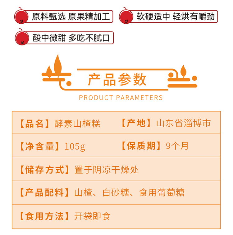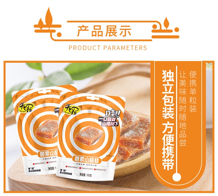 商品名称:(世星阳光)天喔 酵素山楂糕105g*2袋 独立包装方便携带 酸甜适中老少皆宜