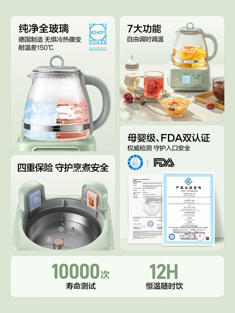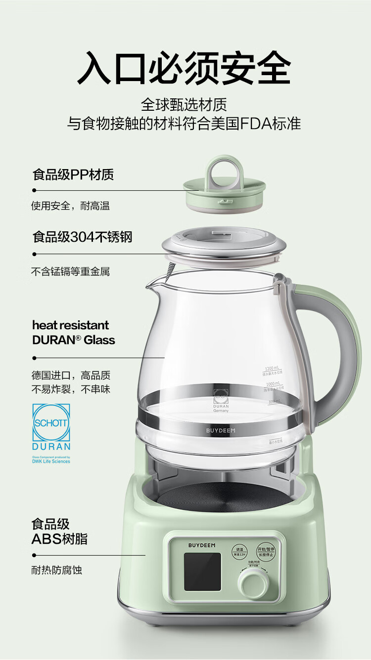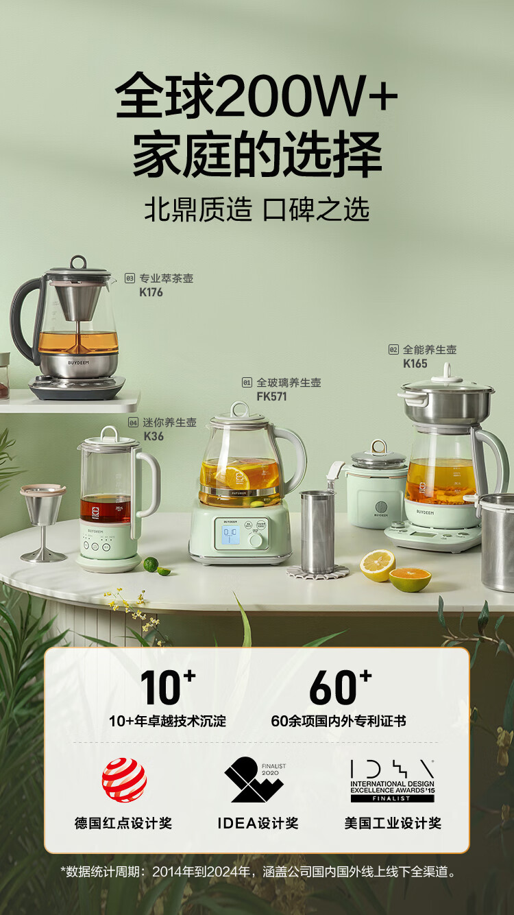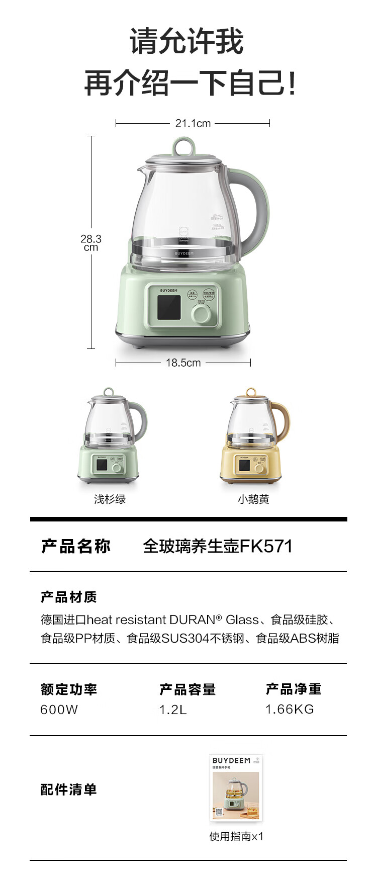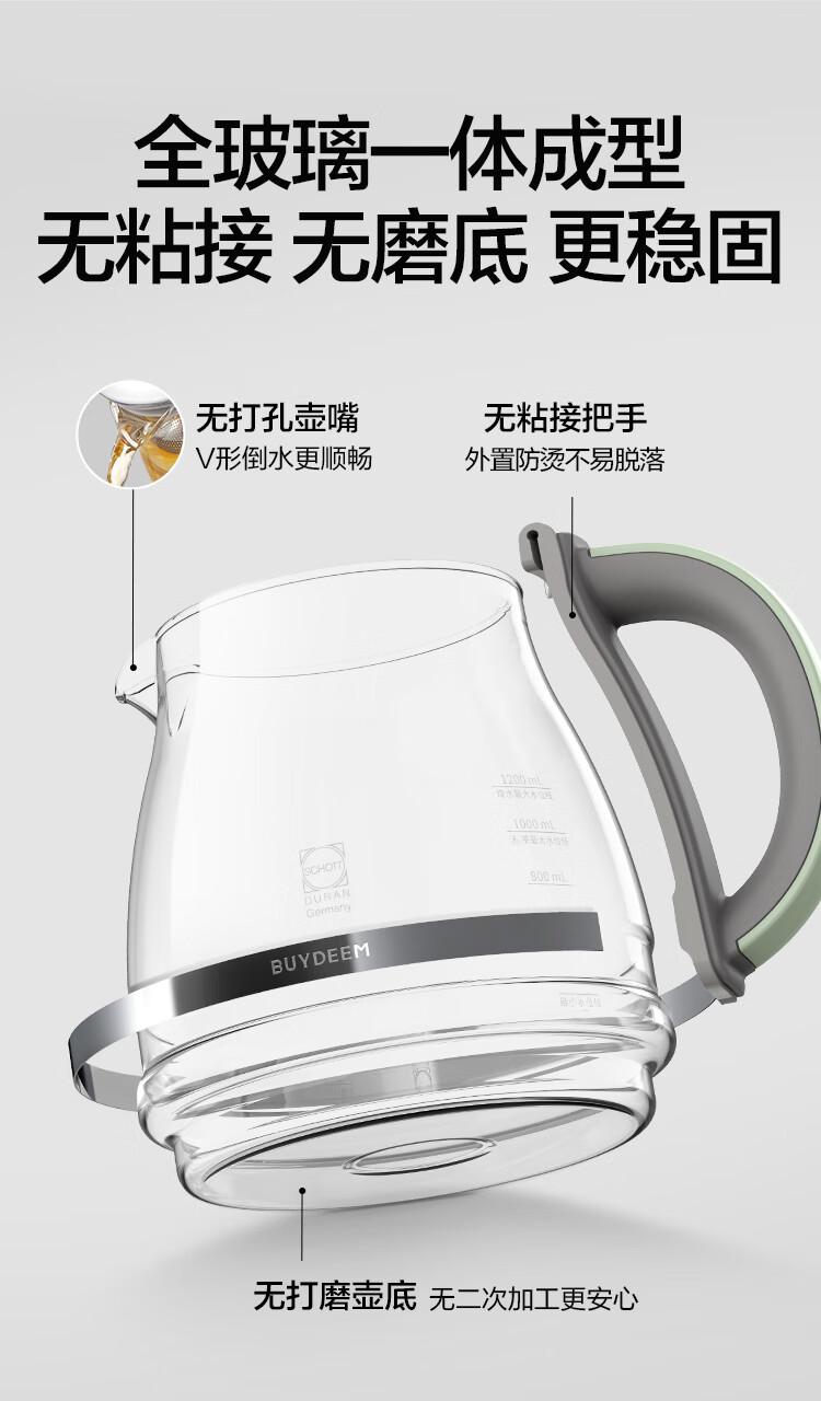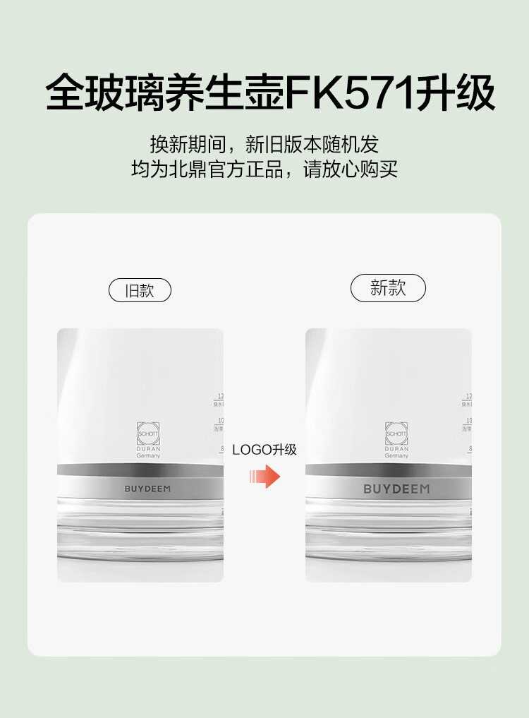 商品名称:(巨邦佑)R+北鼎全玻璃养生壶FK571 1.2L 炖煮茶烧水壶 热牛奶 0胶水母婴级水壶礼物 (下单前请备注颜色或联系客服)