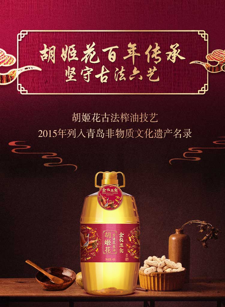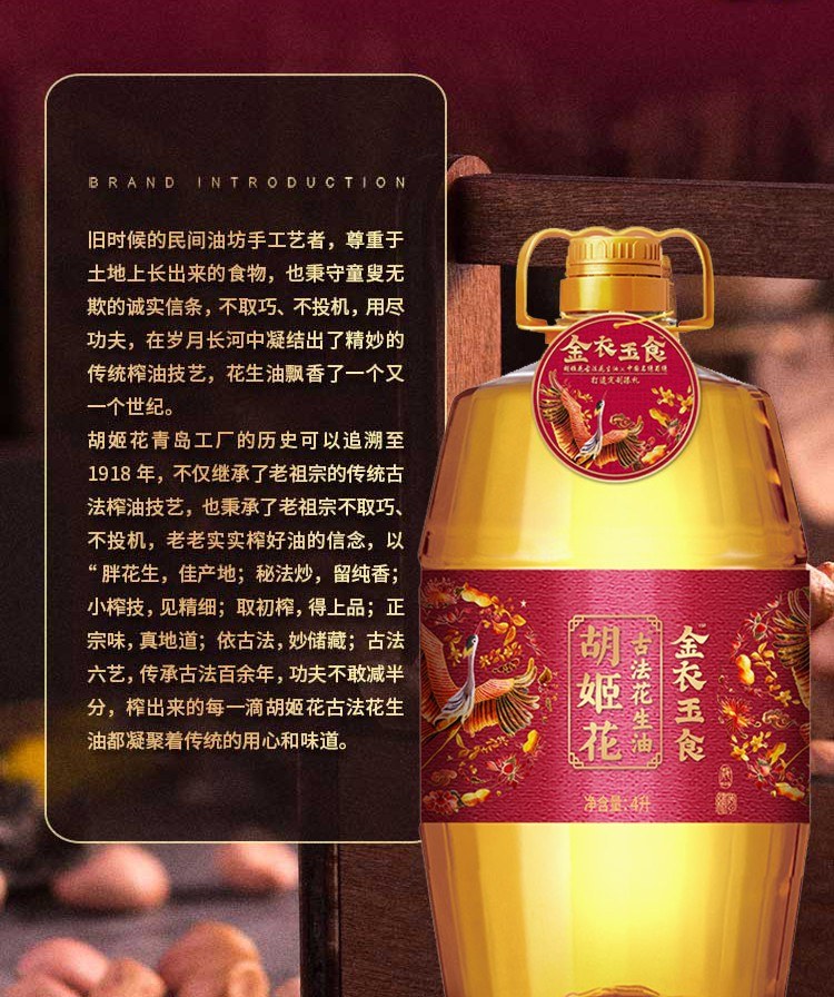 商品名称:(巨邦佑)T+ (yp)胡姬花金衣玉食古法花生油4L 食用油桶装一级压榨 正品