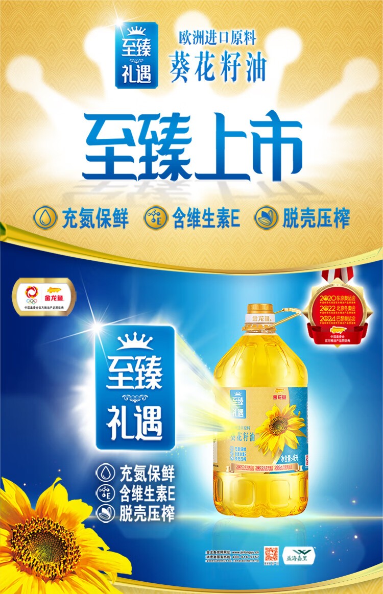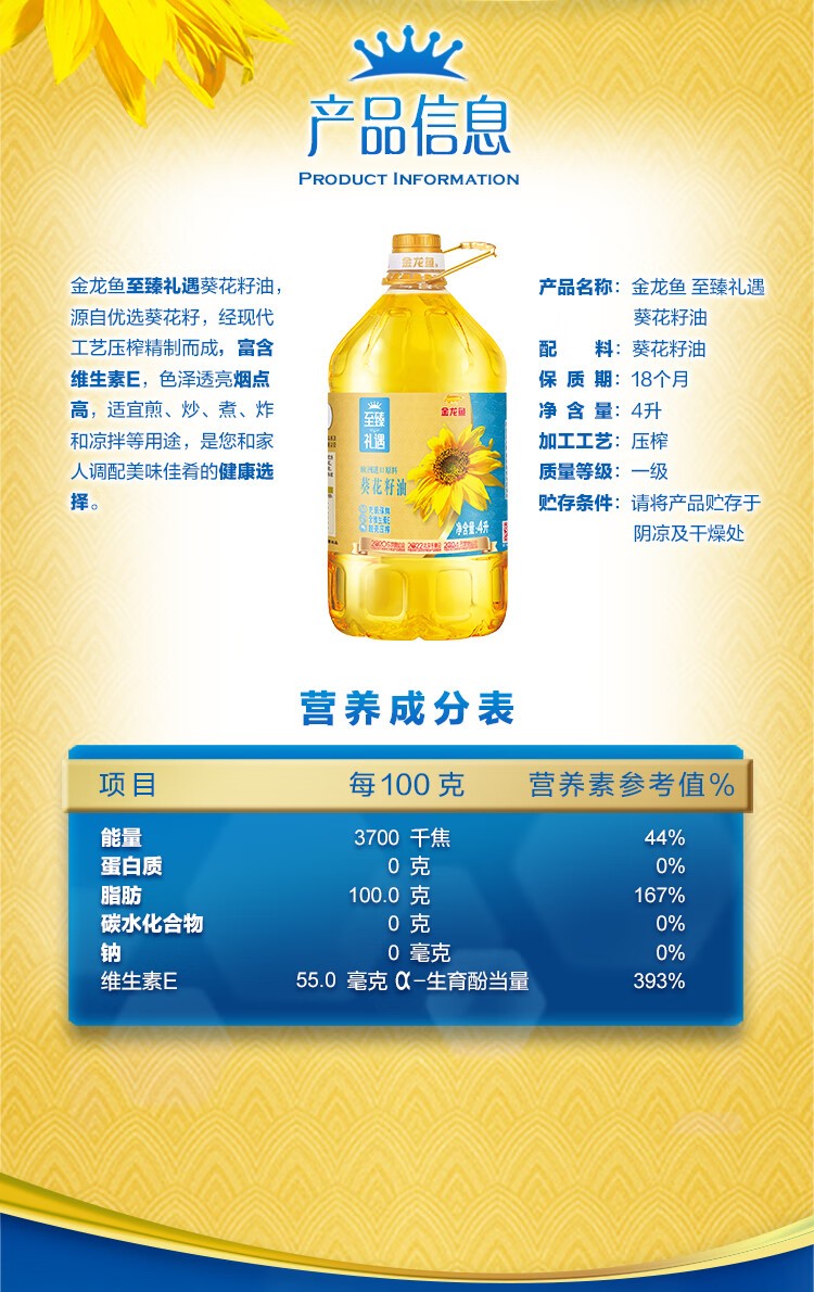 商品名称:(巨邦佑)T+ (yp)金龙鱼至臻礼遇葵花籽油4L 脱壳压榨一级家用年货福利