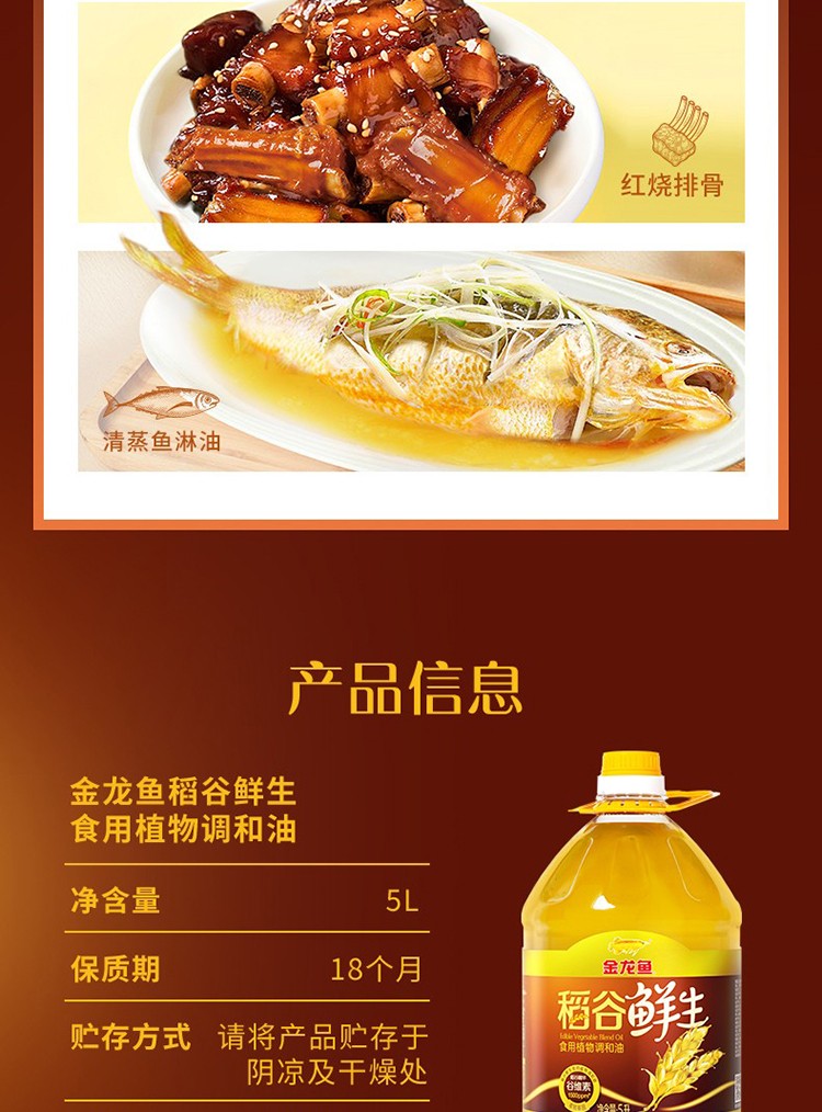 商品名称:(巨邦佑)T+ (yp)金龙鱼稻谷鲜生食用植物调和油5L 家庭炒菜食用油正品保障