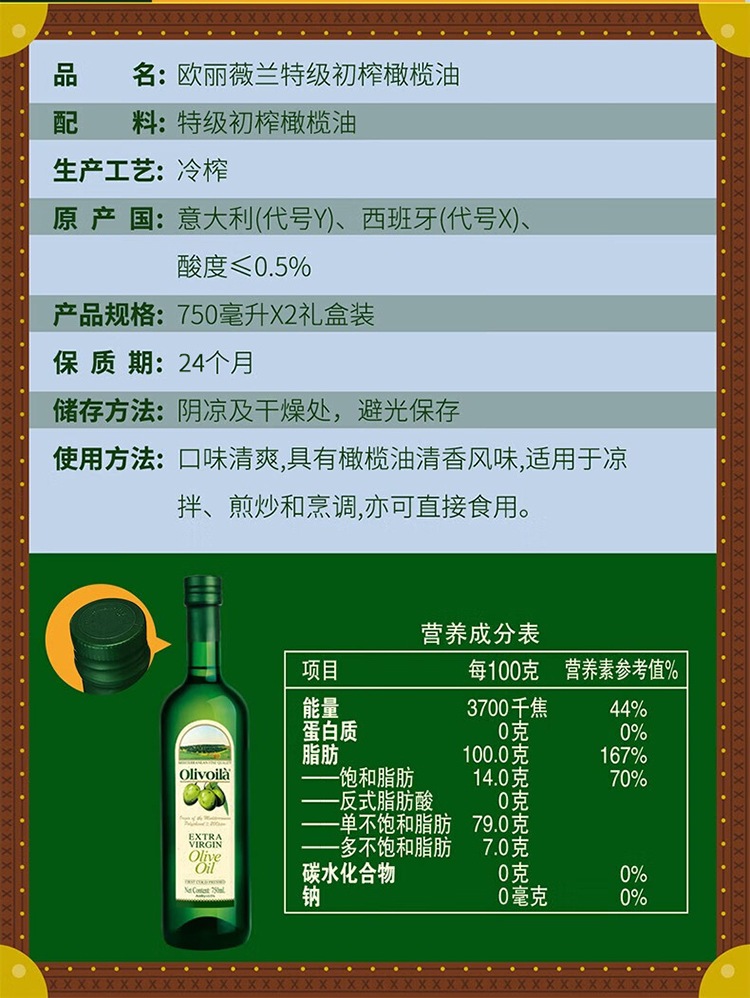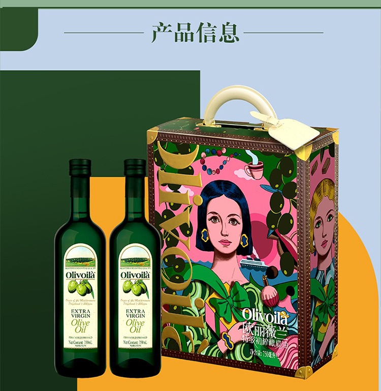 商品名称:(巨邦佑)T+ (yp)欧丽薇兰特级初榨橄榄油插画版750ml*2礼盒装 商务送礼亲朋长辈 企业团购员工福利