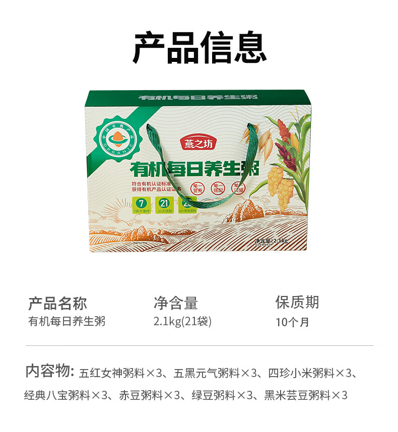 商品名称:(巨邦佑)BJ+燕之坊 有机每日养生粥2.1kg 营养早餐儿童粥红豆八宝五谷养生粥