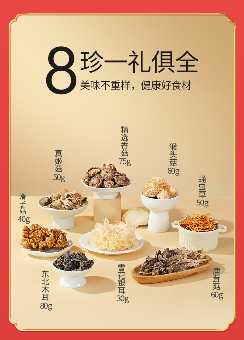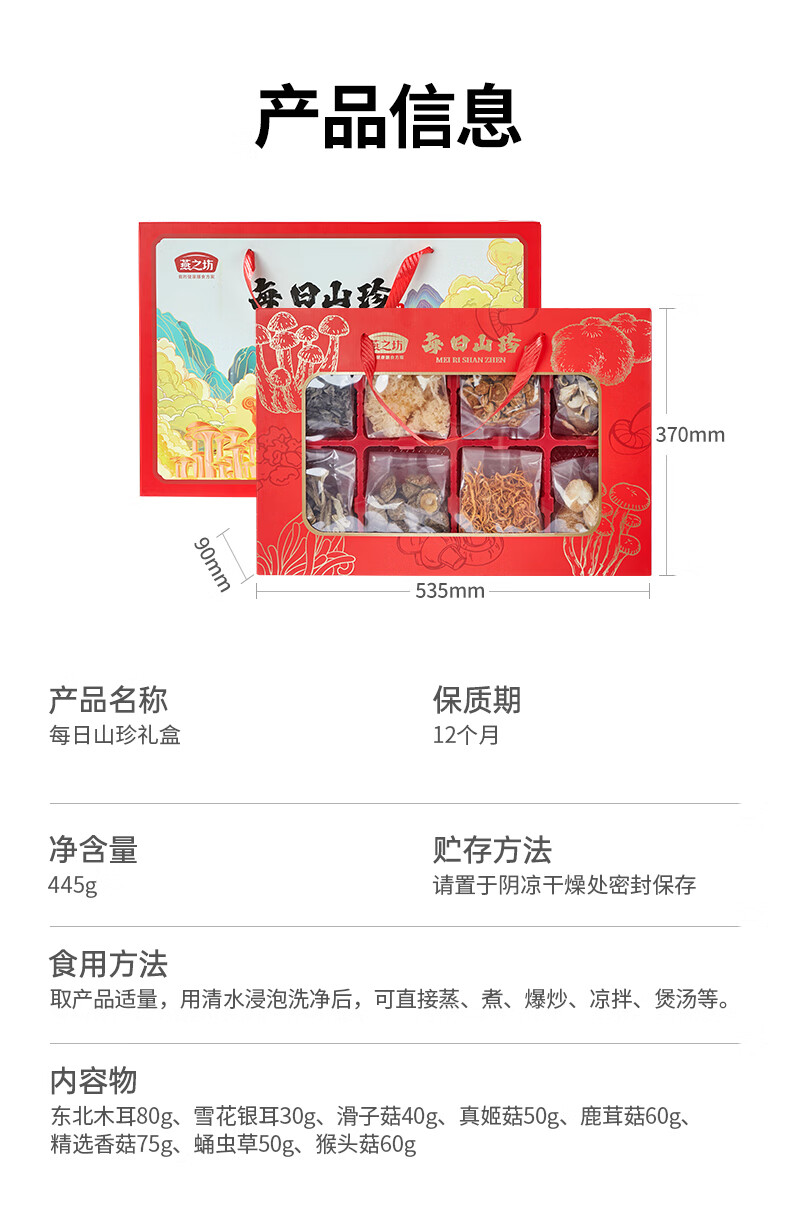 商品名称:(巨邦佑)BJ+燕之坊 每日山珍干货 445g 臻选笋干虫草花银耳香枣组合干货山珍