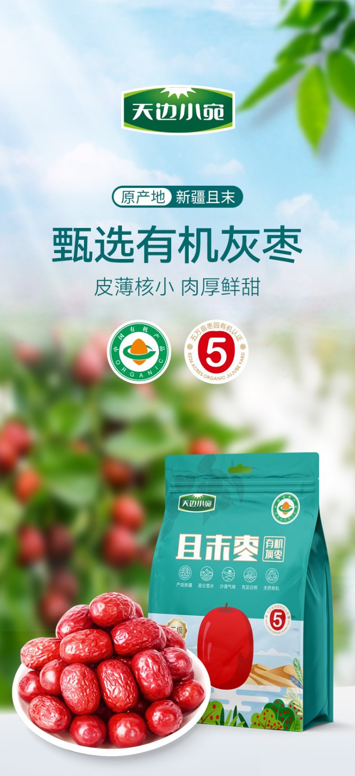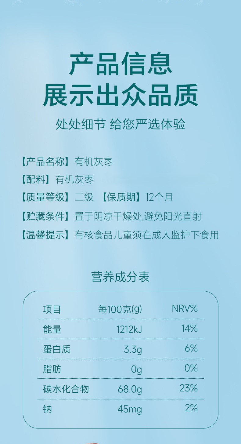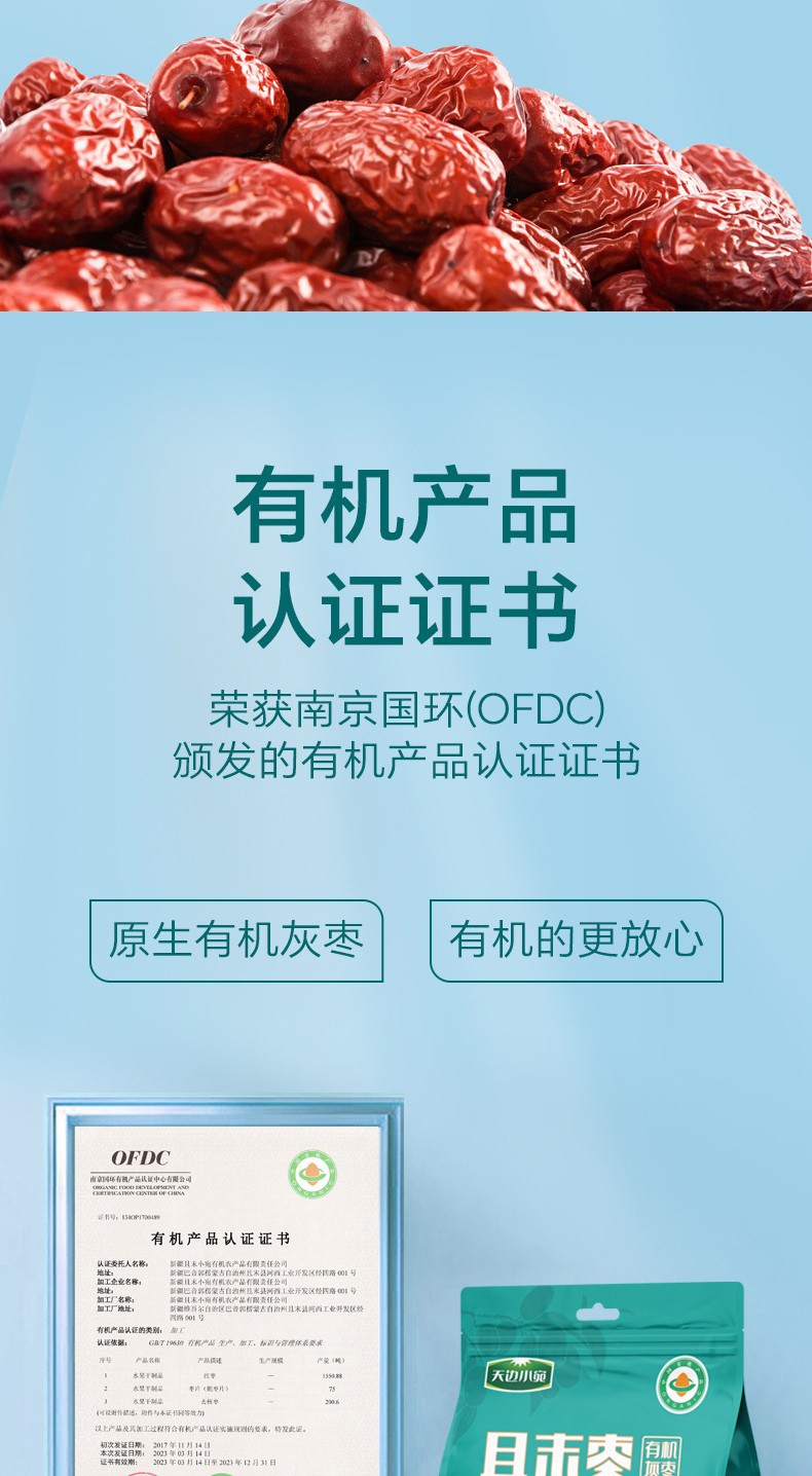 商品名称:(巨邦佑)BJ+天边小宛 二级有机且末灰枣 优质红枣小包装即食
